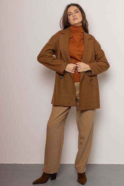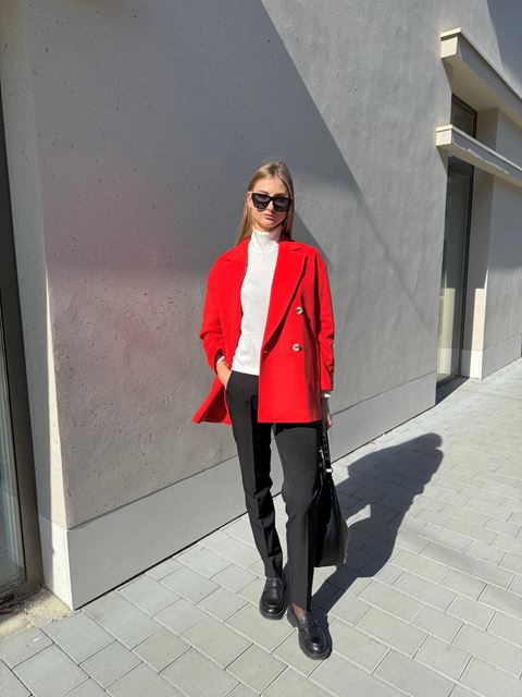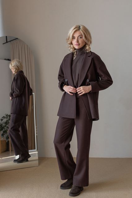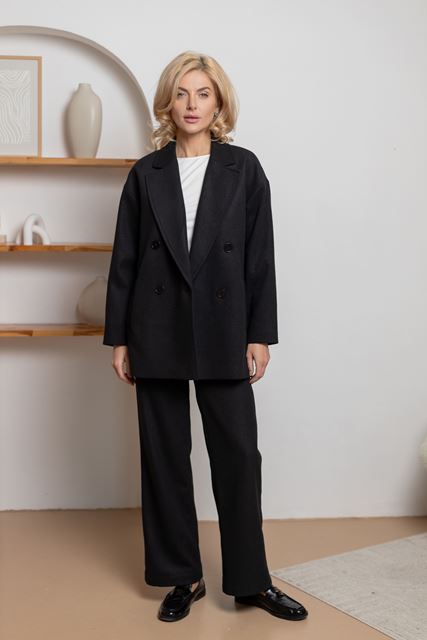 Двобортне пальто довжиною 76см, з класичним коміром та приспущеним плечем, застібкою на два ґудзики. Виготовлене на підкладі, воно забезпечує комфорт і тепло в будь-яку погоду. Зручні кишені додають практичності, роблячи цю модель ідеальним вибором для стильних осінніх образів. Спинка суцільна.