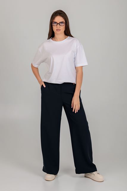 Штани-палаццо вільного силуету з крепової тканини преміум класу, має ідеальну посадку, з бічними кишенями, застібаються на ґудзик і блискавку.